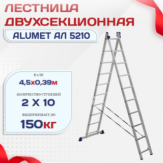 Конструкция неразборная: изготовлена с применением шарниров и дополнительно фиксируется при помощи страховочных ремней. Наличие стабилизатора увеличенной ширины придает дополнительную устойчивость. Лестница изготовлена из прочного алюминиевого сплава и выдерживает вес до 150 кг.