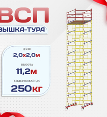 Вышка ВСП-250 шириной 2.0х2.0 метра - универсальная передвижная модель для строительных, ремонтных, монтажных работ как внутри помещения, так и для уличных работ с увеличенной рабочей площадкой. За счет ширины базового блока на ней комфортно работать сразу нескольким людям, разместив весь необходимый инструмент и материалы. Легко собирается без необходимости использования специального инструмента (все элементы соединяются флажковыми механизмами). Ее просто перемещать по объекту за счет наличия больших прорезиненных колес, которые снабжены фиксаторами положения. Позволяют тонко подрегулировать высоту вышки и зафиксировать ее от нежелательных перемещений во время работ. Данную модель вышки можно доращивать по высоте дополнительными секциями до 20 метров (не входят в стоимость). Секции вышки снабжены диагональными металлическими стяжками. Они обеспечивают дополнительную устойчивость при резких порывах ветра. Настил изготовлен из фанеры толщиной 10 мм, состоит из четырех независимых частей, в одной из которых есть люк для безопасного и удобного перемещения для проведения работ. Также настилы можно размещать на разных уровнях вышки для одновременных работ, соблюдая технику безопасности. Помните, вышка выдерживает общий вес до 250 кг.